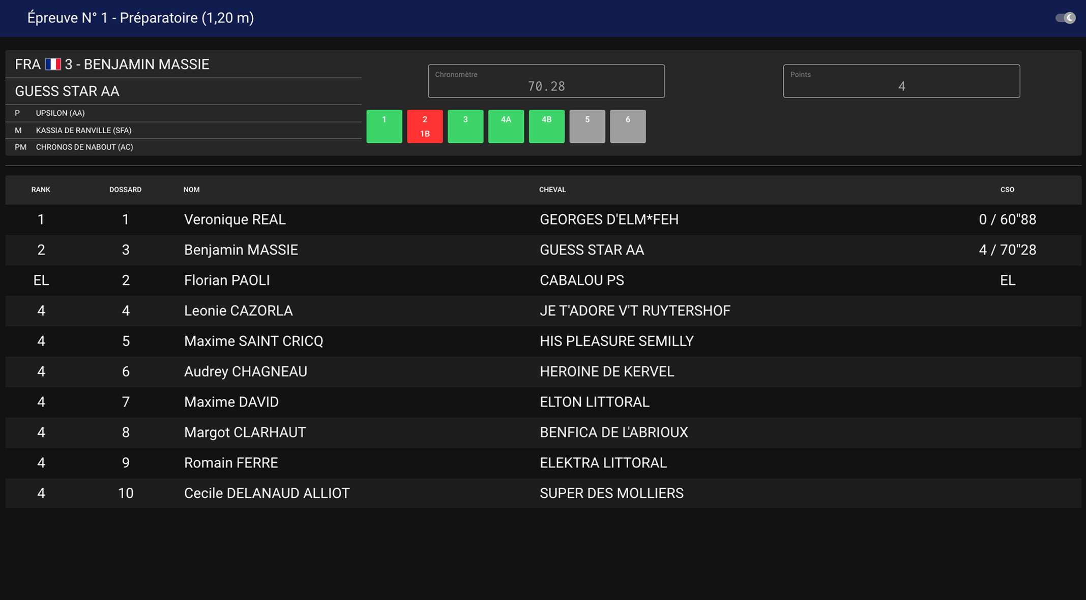 Chevaux au contrôle